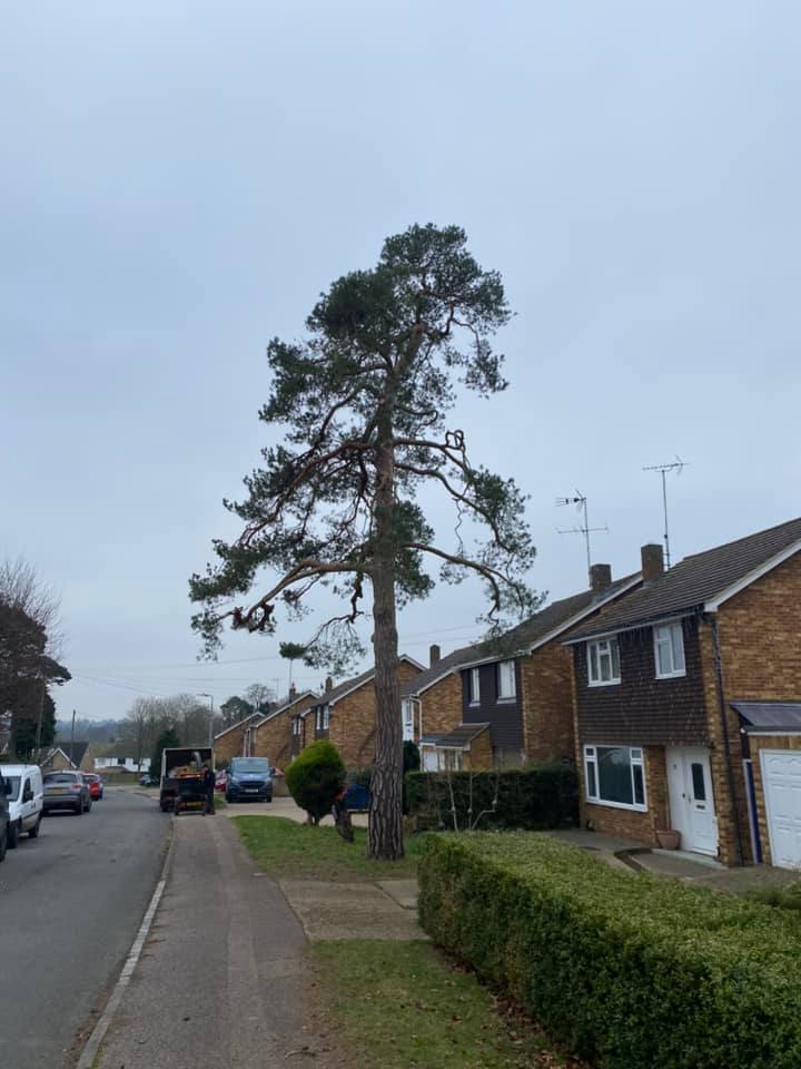 Completed works to a Scots pine covered by a TPO. The ‘witches broom’ was removed from the tree and the crown was lifted, thinned and had all the deadwood removed, leaving a much healthier tree and allowing light to pass through.