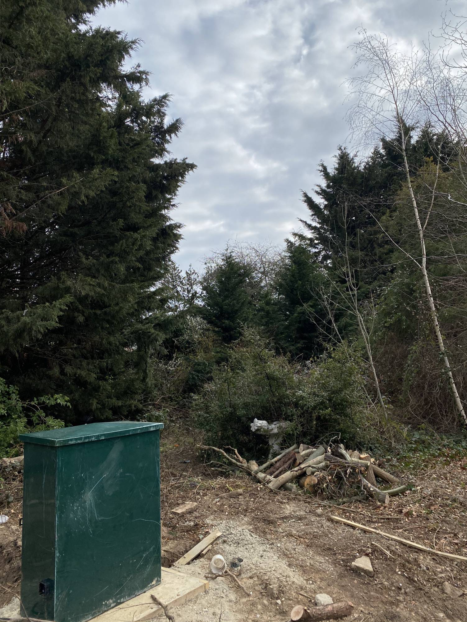 We completed this site clearance at a building site to make way for new developments and landscaping/replanting. All trees and shrubs were processed and taken away for recycling as wood fuels.
